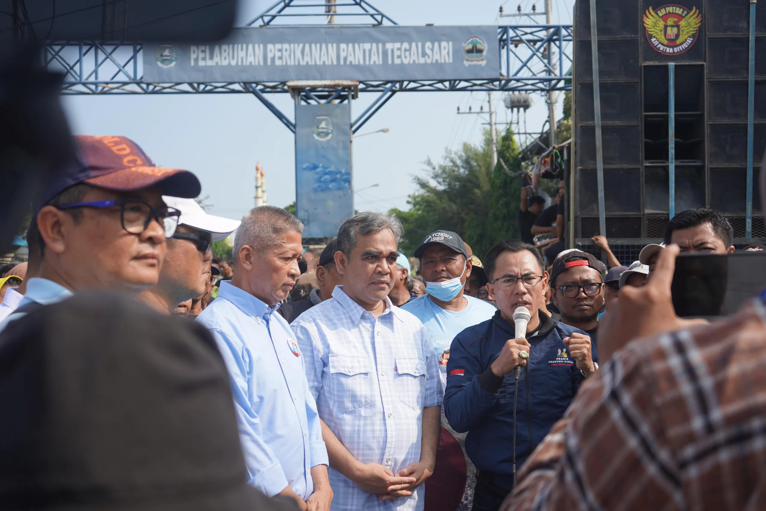 Tegal – Sekjen Partai Gerindra sekaligus Wakil Ketua Tim Kampanye Nasional, Ahmad Muzani, menghadiri deklarasi dukungan Solidaritas Nelayan Indonesia (SNI) kepada pasangan capres cawapres nomor urut 2, Prabowo-Gibran. Deklarasi dihadiri ribuan nelayan dan masyakarat di Pelabuhan Perikanan Pantai Tegalsari, Kota Tegal, Minggu (17/12).