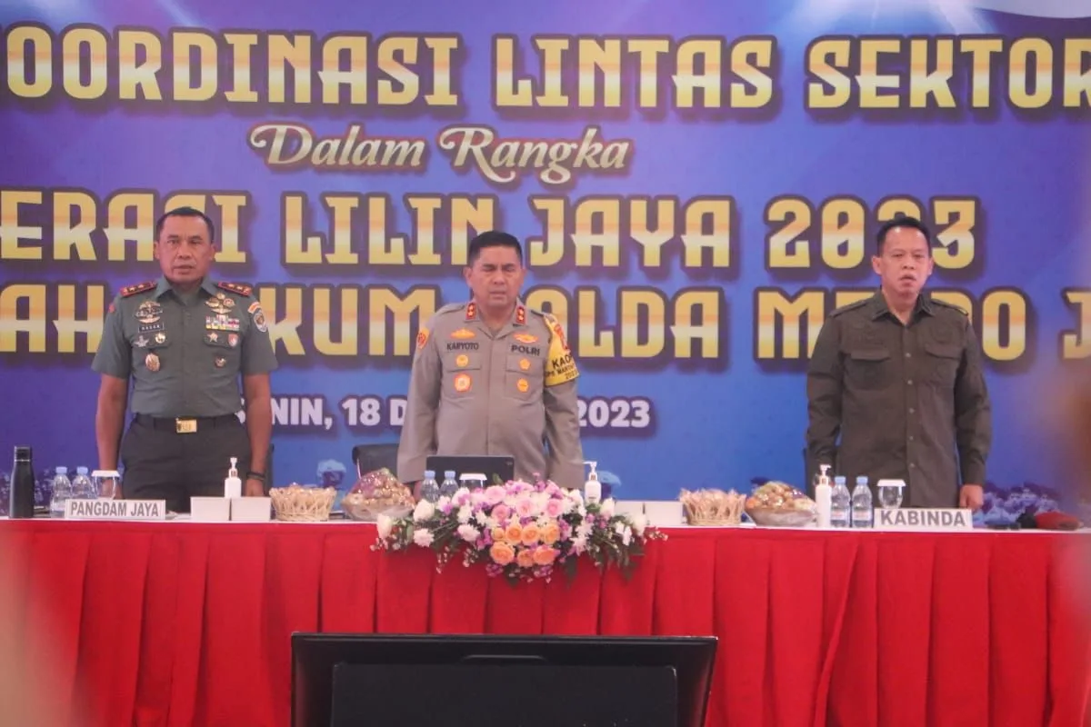 JAKARTA – Dalam rangka mengamankan perayaan Natal 2023 dan Tahun Baru 2024 di DKI Jakarta dan sekitarnya, Polda Metro Jaya menggelar Rapat Koordinasi Lintas Sektoral dalam rangka Operasi Kepolisian Terpusat “Lilin Jaya – 2023” di Gedung Balai Pertemuan Metro Jaya, Senin (18/12/2023).