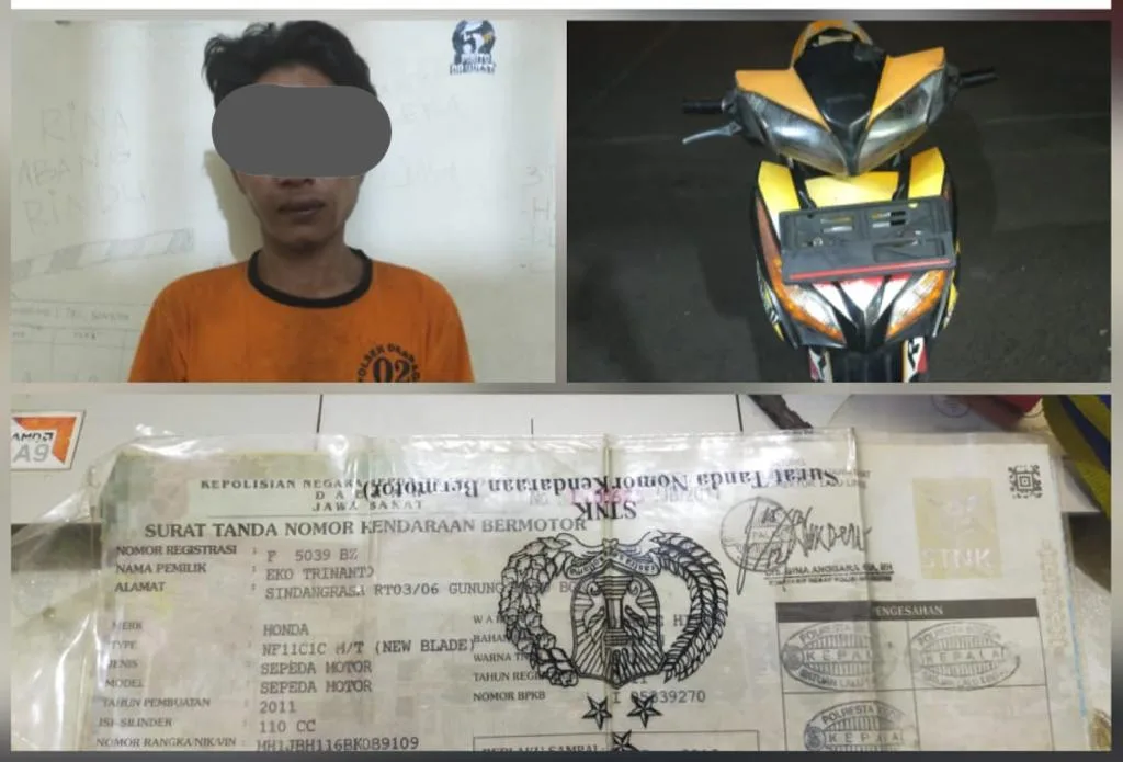 Polres Bogor – Pihak kepolisian Polsek Dramaga Polres Bogor Polda Jabar, Berhasil Tangkap dan Ungkap Pelaku Pencurian Sepeda Motor Roda Dua Minggu 17 Desember 2023 sekira pukul 04.00 Wib dilokasi TKP Kp Cibeureum Ds Sukawening Kec Dramaga Kab Bogor. (18/12/2023)