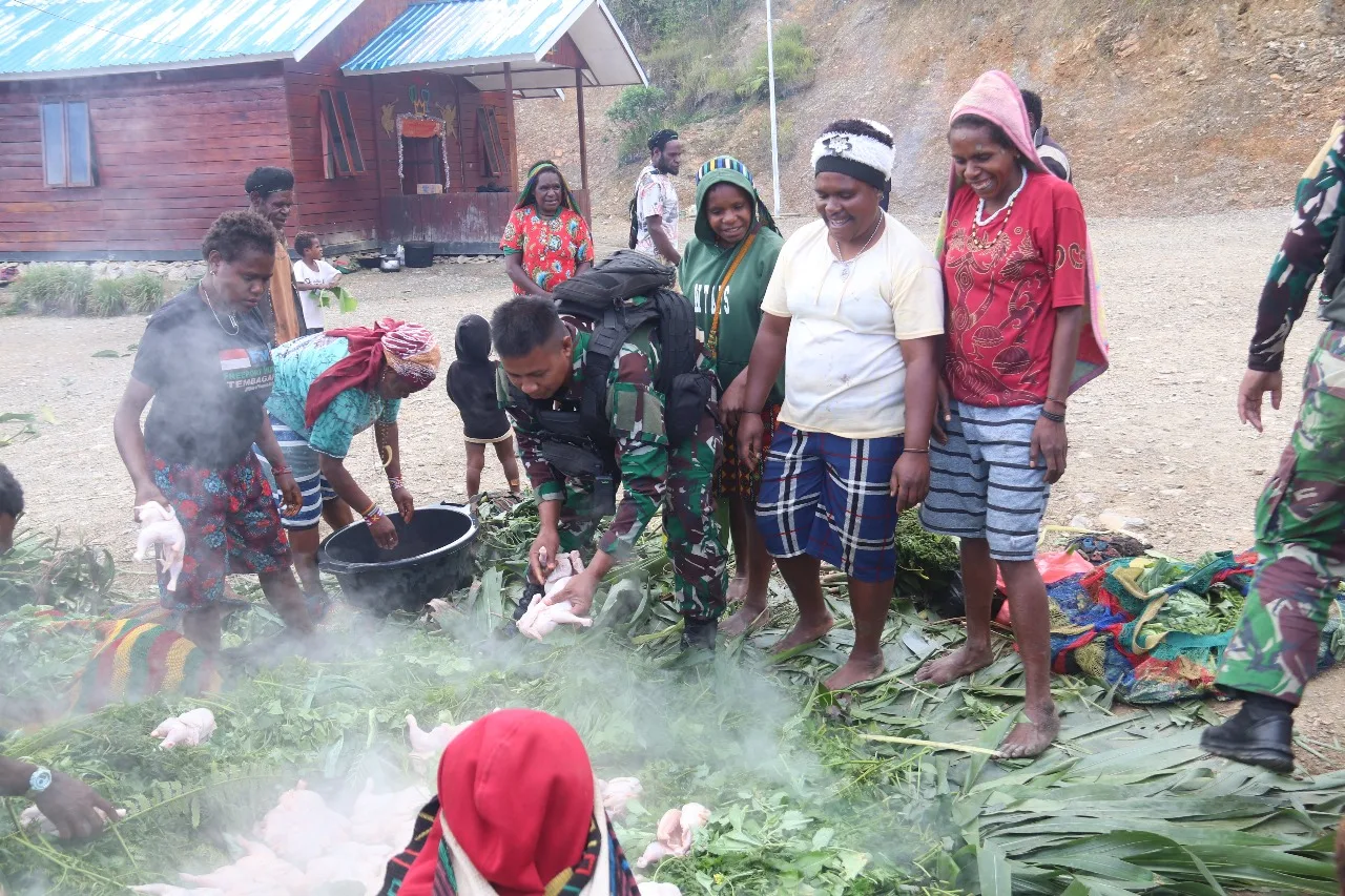 Tradisi Bakar Batu Satgas 330 dan Warga Kampung Bazemba, Merajut Kasih dalam Keberagaman di Intan Jaya