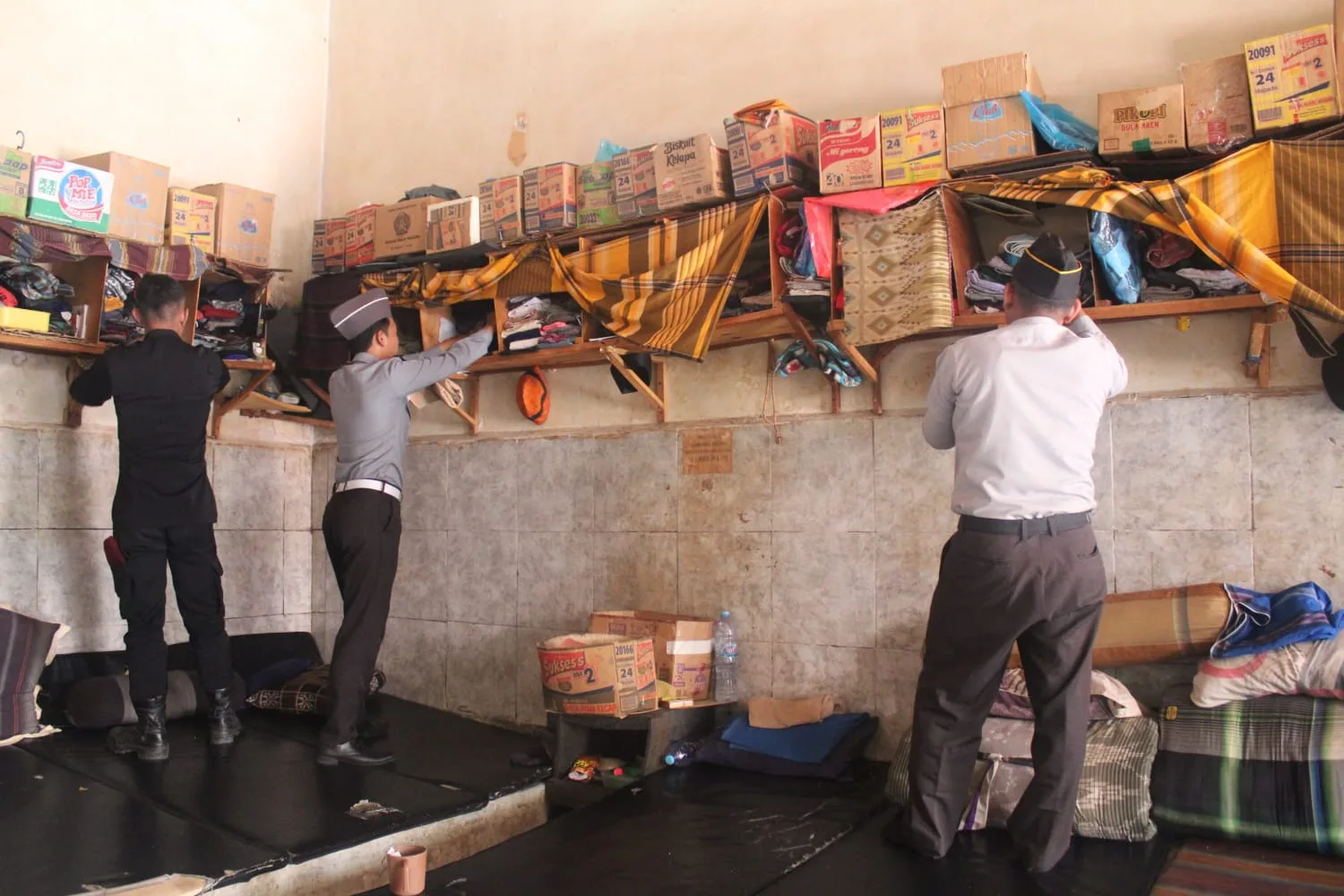 Pasuruan Kota – Jelang Natal dan Tahun Baru (Nataru), Lapas Kelas IIB Pasuruan laksanakan kegiatan penggeledahan pada Blok Hunian warga binaan pemasyarakatan (WBP) seperti yang terpantau siang tadi pukul 12.00 WIB di kamar D2 dan D3, Selasa (19/12/2023). Hal ini sesuai dengan pedoman