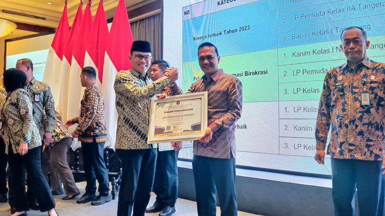 Lapas Pemuda Kelas IIA Tangerang mendapatkan penghargaan berupa Satuan Kerja Berkinerja Terbaik Kedua Tahun 2023 dan Satuan Kerja Terbaik 2 dalam Reformasi Birokrasi Tahun 2023 dilingkungan Kanwil Kemenkumham Banten.