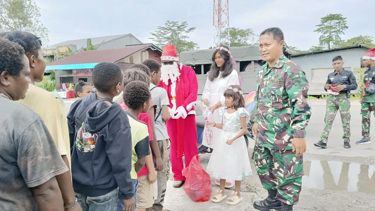 Jelang Natal 2023, Sinterklas Kodim 1710/Mimika Bagikan Bingkisan Kepada Anak-Anak