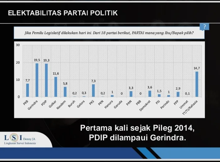 LSI Denny JA Sebut Dua Faktor Elektabilitas Gerindra Melampaui PDIP
