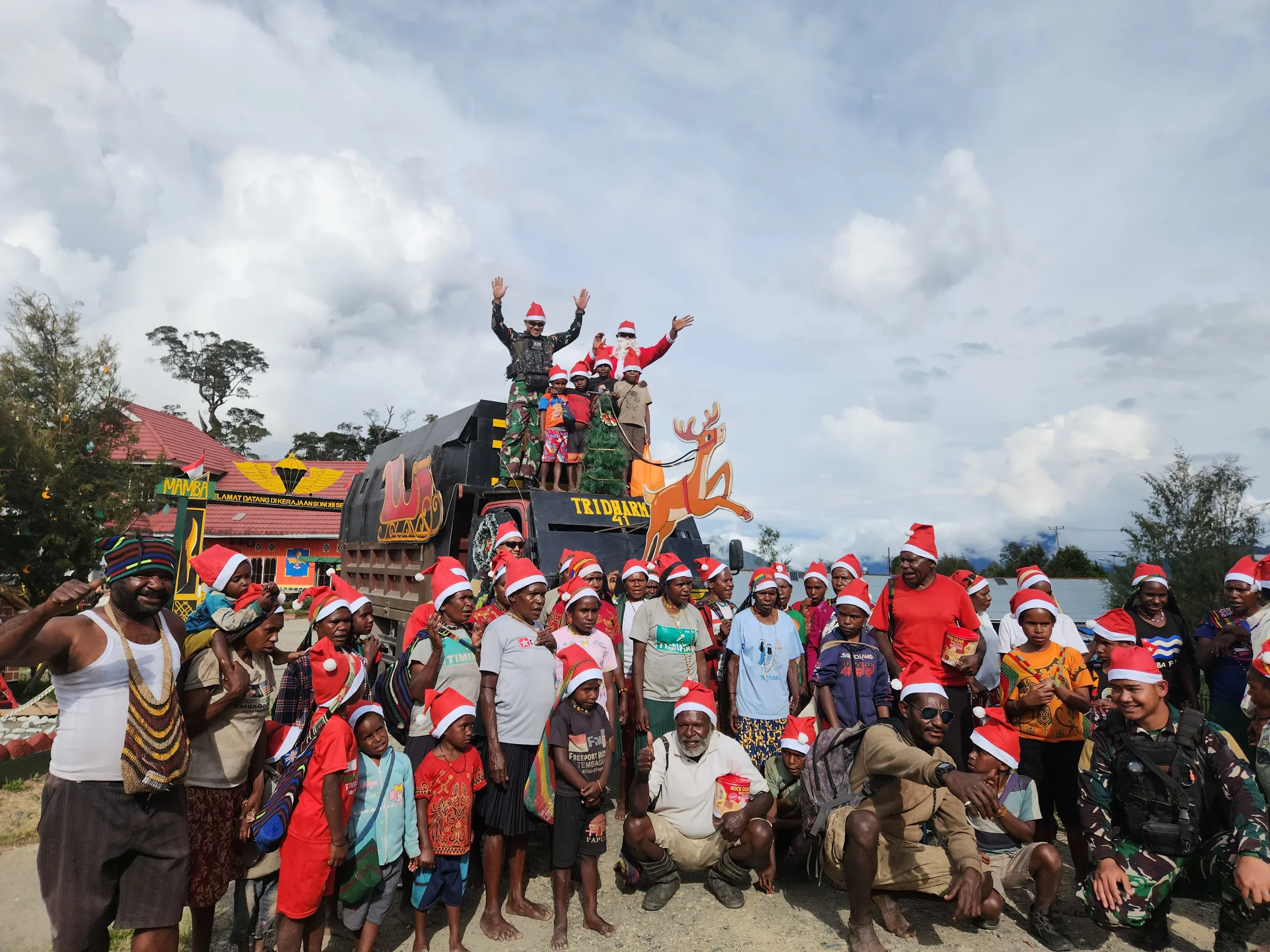 Perdana Dalam Sejarah Perayaan Natal di Intan Jaya, Satgas 330 Bagikan Bingkisan Natal Gunakan Kereta Santa