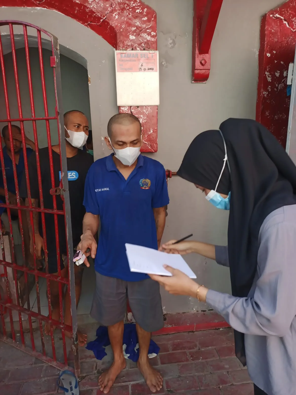 Dokter dan tim medis Rutan Bangil melakukan penyuluhan kesehatan dan pembagian vitamin bagi warga binaan blok. Penyuluhan ini dilakukan agar warga binaan selalu menerapkan pola hidup bersih dan hidup sehat serta menjaga kebersihan kamar.