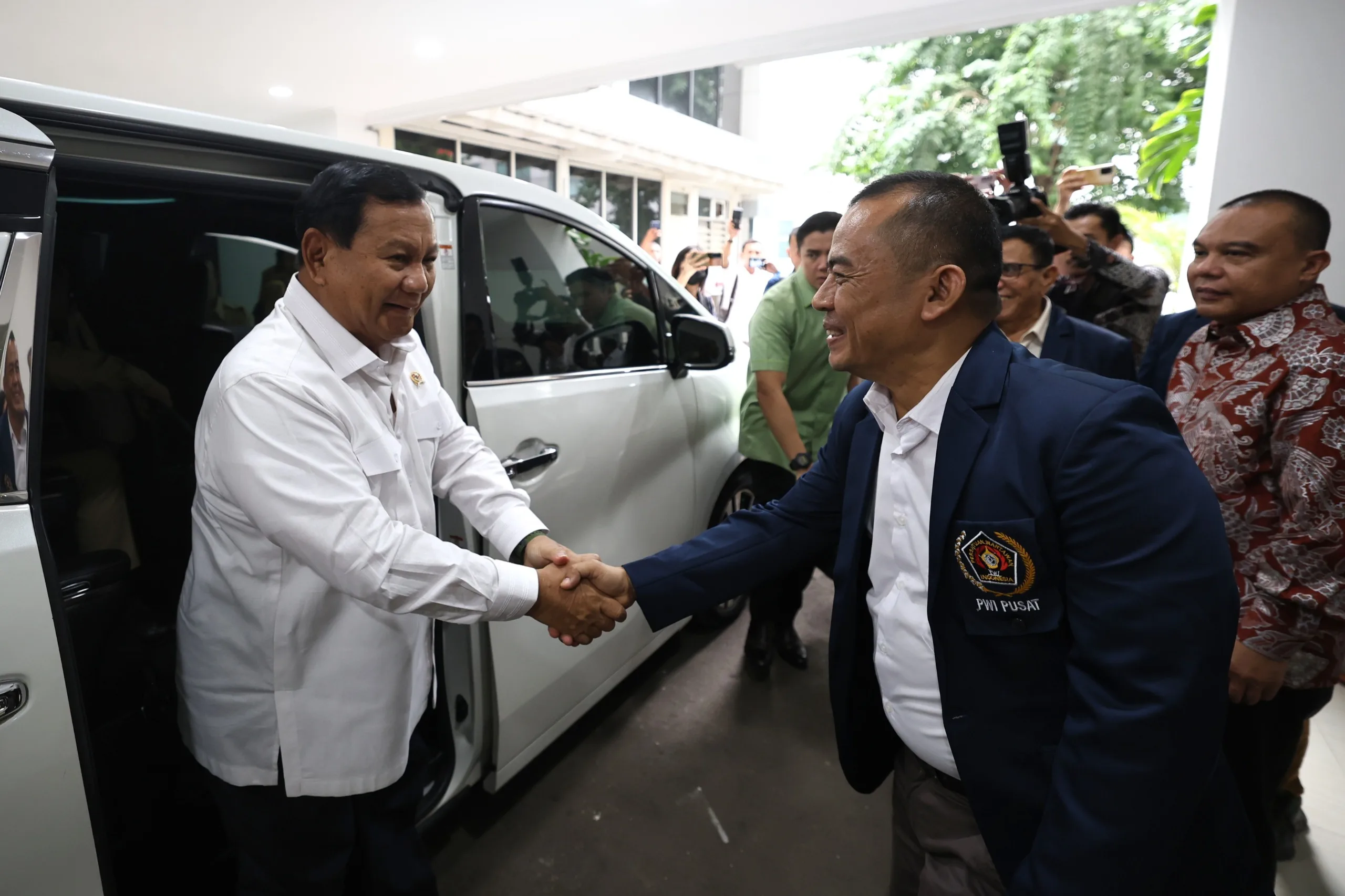Prabowo hadir memenuhi undangan PWI pada pukul 13:00 WIB tiba di Gedung Dewan Pers disambut oleh Ketua Umum PWI Pusat Hendry Ch Bangun dan jajaran.