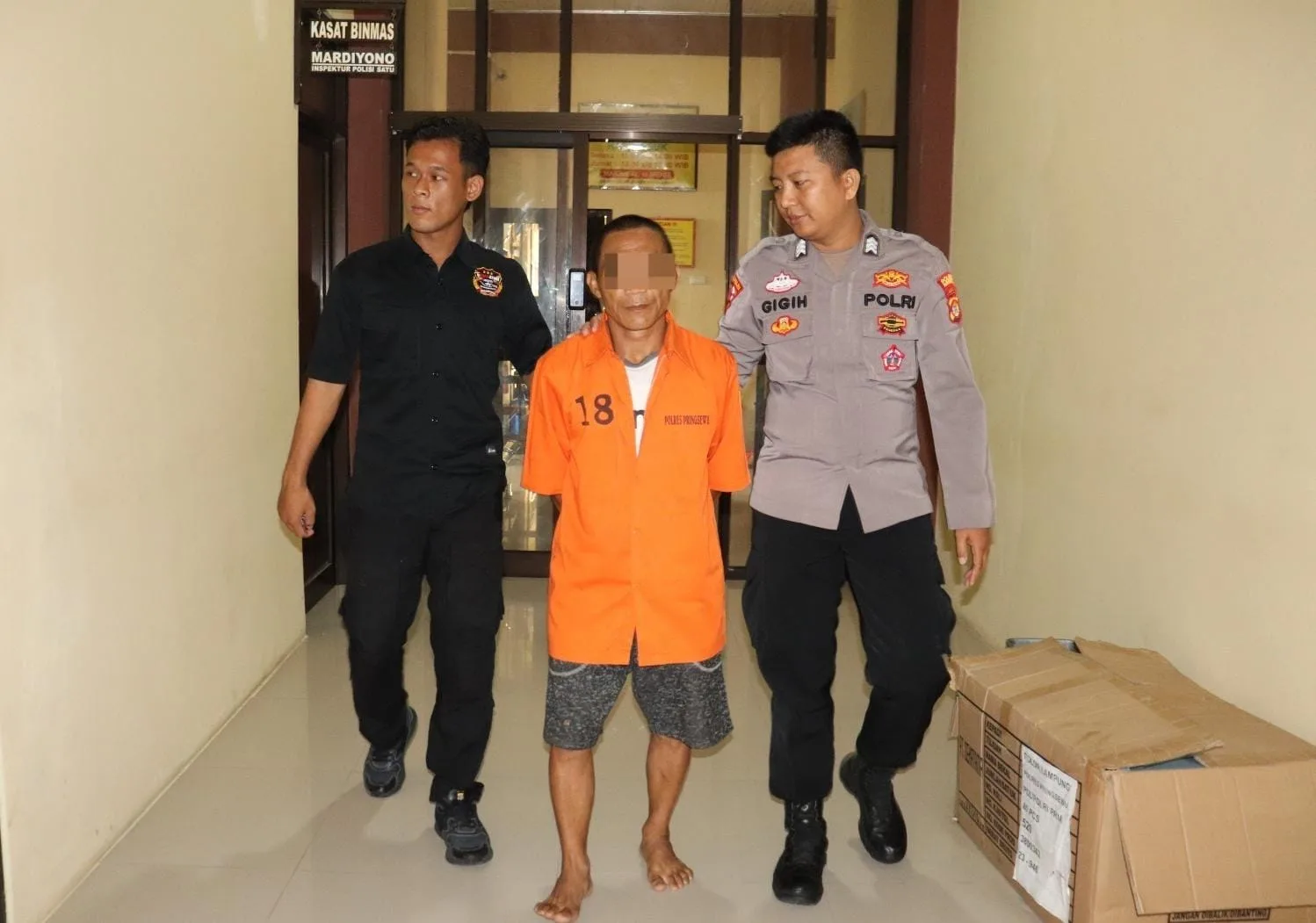 Pelaku, seorang pria berusia 45 tahun asal Kecamatan Gedong Tataan, Kabupaten Pesawaran, diringkus oleh petugas saat sedang melintas di jalan raya Pekon (Desa) Klaten, Gadingrejo, Pringsewu.