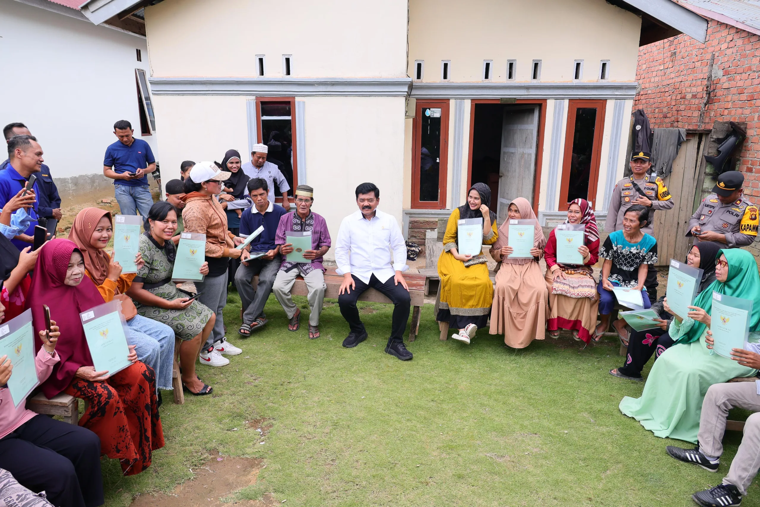 Hadi Tjahjanto mengunjungi satu persatu rumah masyarakat penerima sertipikat tanah tersebut. Ia juga berkesempatan duduk berkumpul bersama para penerima sertipikat untuk berdialog terkait proses pendaftaran tanahnya.