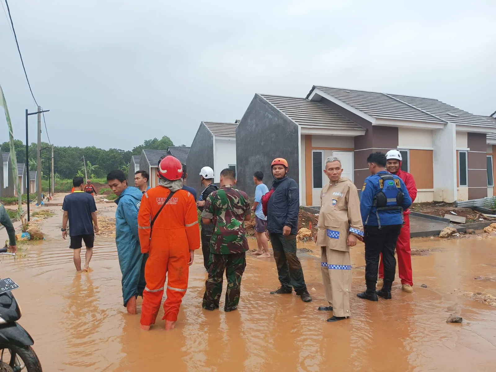Polres Bogor – Bencana alam Banjir yang terjadi dari luapan Anak sungai Cipandan Di Perum Puri Asri 3 Kp Cegar Ds Sukamaju Kec Jonggol Kab Bogor, Minggu 7 Januari 2024 Sekira Pukul 14.30 wib. (8/1/2024)