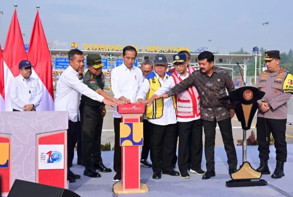 Depok – Presiden RI Joko Widodo meresmikan jalan tol Pamulang-Cinere-Raya Bogor, Senin (08/01/2024), di Gerbang Tol Limo Utara, Kota Depok, Jawa Barat. Jalan tol sepanjang 14,8 kilometer ini dibangun dengan total investasi sebesar Rp4 triliun.