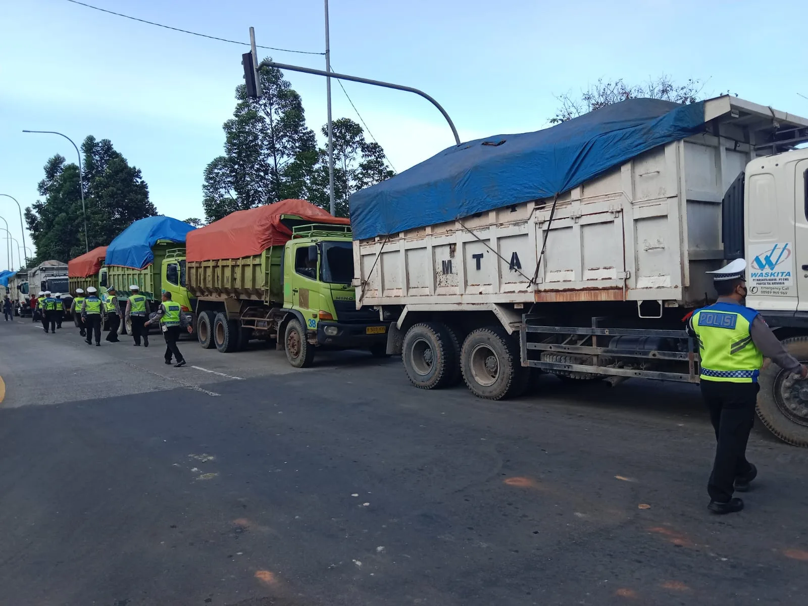 Tindakan yang dilakukan petugas kepolisian terhadap puluhan truk itu di lakukan penilangan dan sementara armada truk diamankan berjejer rapih di depan Mapolres Metro Tangerang Kota, Polda Metro Jaya.