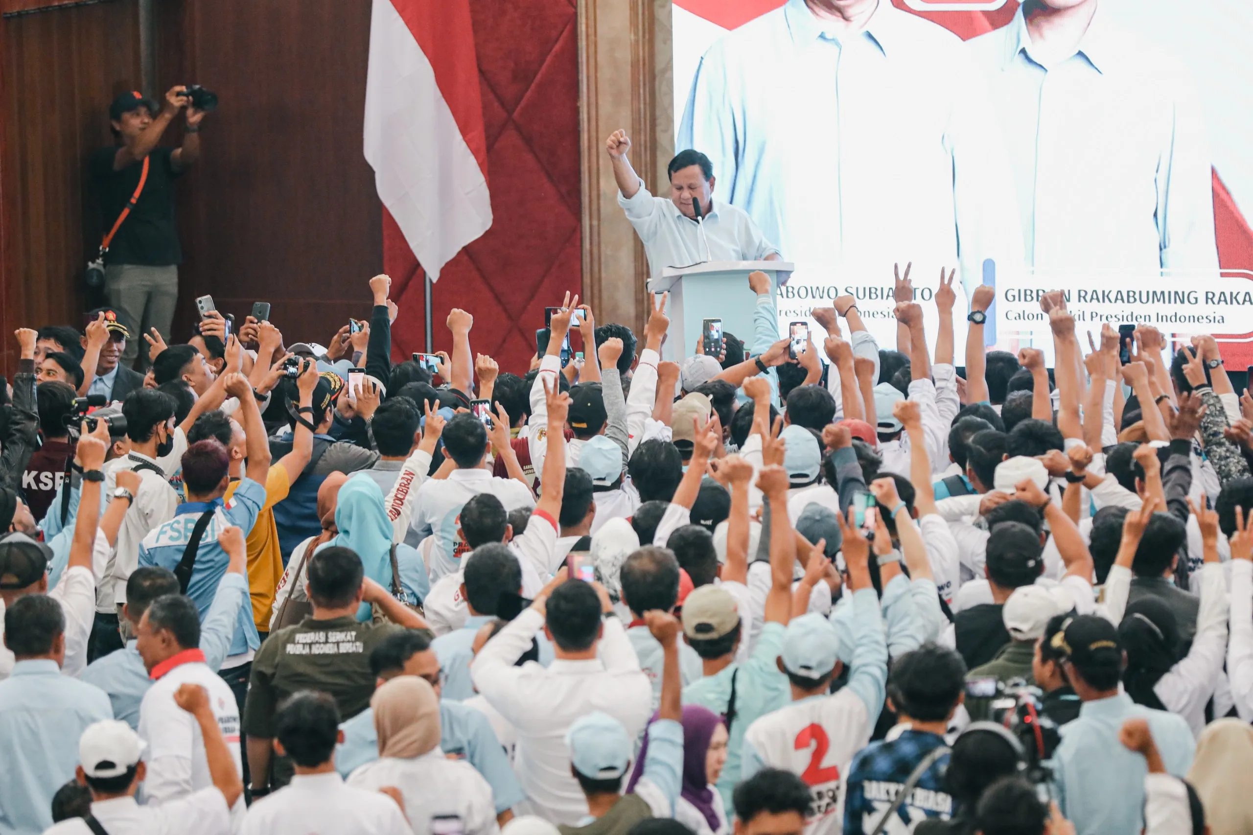 “Saya berani berdiri di depan rakyat Indonesia, makanya saya minta mandat kepada rakyat Indonesia. Berilah kesempatan kepada kami untuk bekerja sebenar-benarnya, sejujur-jujurnya demi masa depan anak dan cucu kita,” ungkap Prabowo saat menghadiri deklarasi KSPN di Bandung, Minggu (14/1).