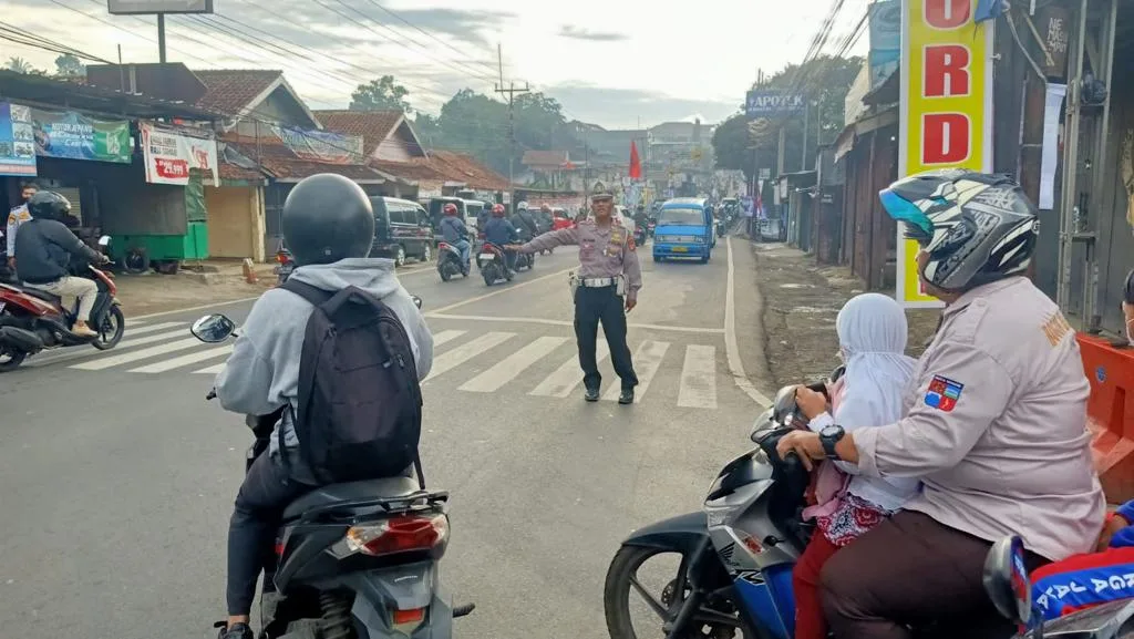 Polres Bogor – Polsek Ciampea Polres Bogor Polda Jabar, Kegiatan pengaturan lalu lintas untuk memberikan pelayanan kepada masyarakat yang beraktifitas pagi hari, siang rawan kemacetan dan sore pulang beraktifitas ramai dan macet, sehingga masyarakat merasa aman dan nyaman dengan kehadiran Pihak Kepolisian, serta untuk menghindari terjadinya kemacetan dan kecelakaan lalu lintas utamanya bagi anak-anak yang akan menyebrang jalan pada saat berangkat dan pulang sekolah (18/1/2024)