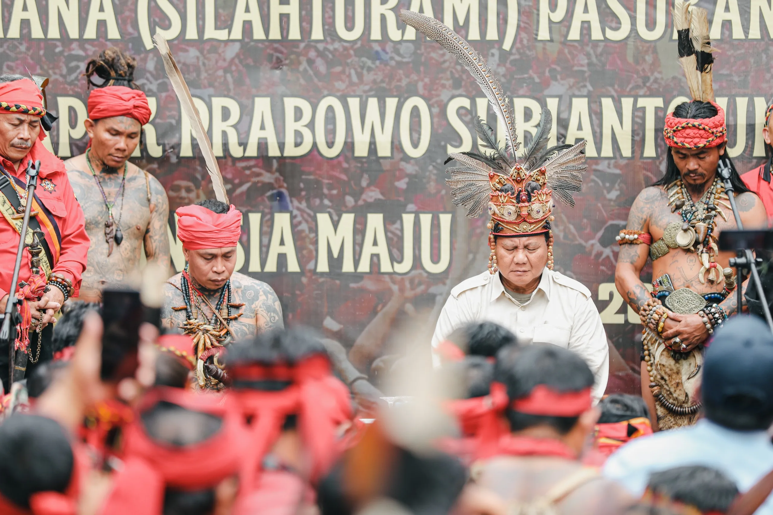 Pontianak – Momen langka terjadi saat capres 02, Prabowo Subianto menghadiri Bahaupm Bide Bahana (Silaturahmi) bersama ribuan Pasukan Merah Tariu Borneo Bangkule Rajakng (TBBR) di Pontianak, Kalimantan Barat, Sabtu (20/1).