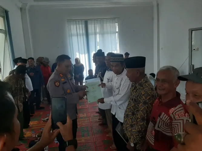 KAMPAR – Kapolsek XIII Koto Kampar, AKP Sumaryadi menghadiri kegiatan penyerahan setifikat program Pendaftaran Tanah Sistematis Lengkap (PTSL) Tahun 2023. Sertifikat tanah diserahkan Kepala BPN Kampar yang diwakili Ketua Tim 4 PTSL, Syahrinaldi S AP kepada 508 orang masyarakat peserta program PTSL di Aula Kelurahan Batu Bersurat, Rabu (24/01/2024).