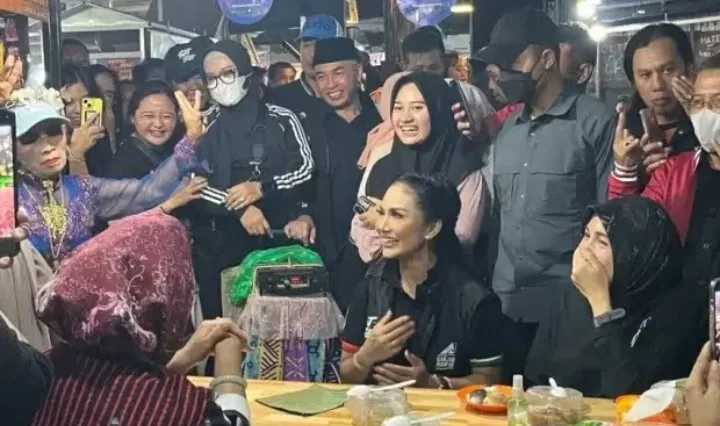 Atikoh pun berfoto dengan warga itu dengan senyuman manis di pipinya. Setelah itu, ia juga sempat melakukan senam bersama warga lokal.