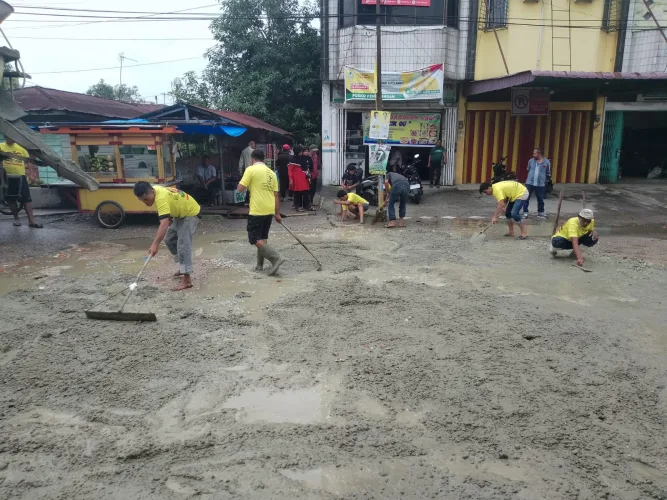 PEKANBARU – Ketua AMPG Riau yang juga Calon Anggota DPRD Provinsi Riau Nomor Urut 3, Taufiq Erman memberikan bantuan untuk perbaikan jalan rusak di Kelurahan Pesisir, Kecamatan Limapuluh, Kota Pekanbaru, Rabu (07/02).