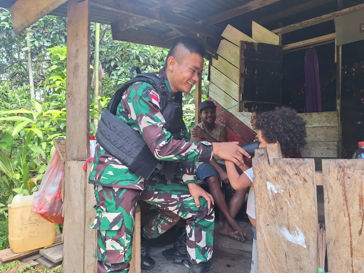 Personel satgas yonif 122/Tombak Sakti terus melakukan pendekatan dengan masyarakat Papua yang dimana bertujuan untuk mempererat hubungan kekeluargaan yang telah di bangun mulai dari pertama menginjakkan kaki di tanah Papua sampai dengan saat ini.