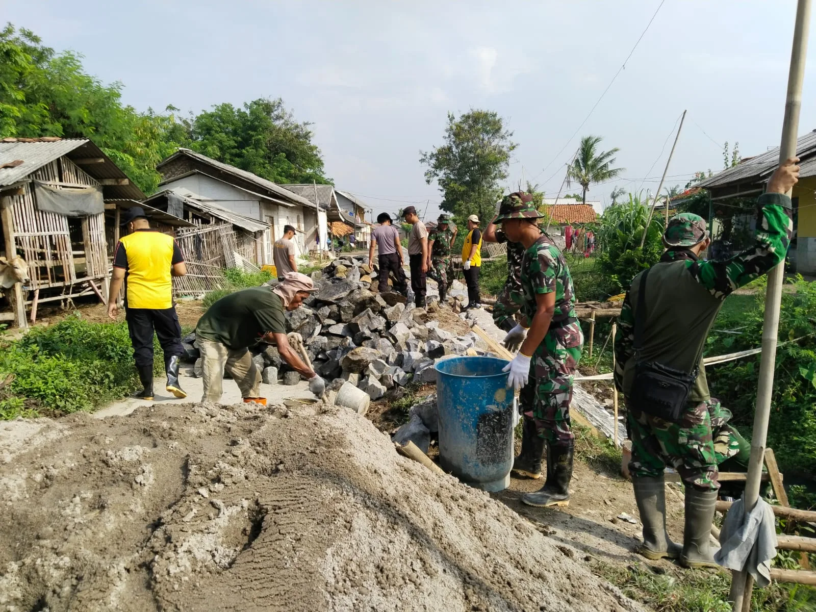 Karang Bahagia Bekasi – Pembangunan turap adalah pembangunan struktur atau dinding penahan tanah yang di kerjakan oleh satgas TMMD Ke 119 Kodim 0509 Kabupaten Bekasi untuk mencegah longsor atau erosi pada permukaan tanah di Bantaran kali Kampung Lemah Abang RT 03/05 Desa Karang Mukti Kecamatan Karang Bahagia, Sabtu 2/3/2024.