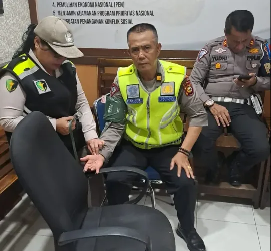 Kegiatan di pimpin Kasatgas Ban Ops bersama tim mengecek tensi dan kondisi kesehatan personil yang terkena sprint Operasi Keselamatan Lancang Kuning 2024 Polda Riau.
