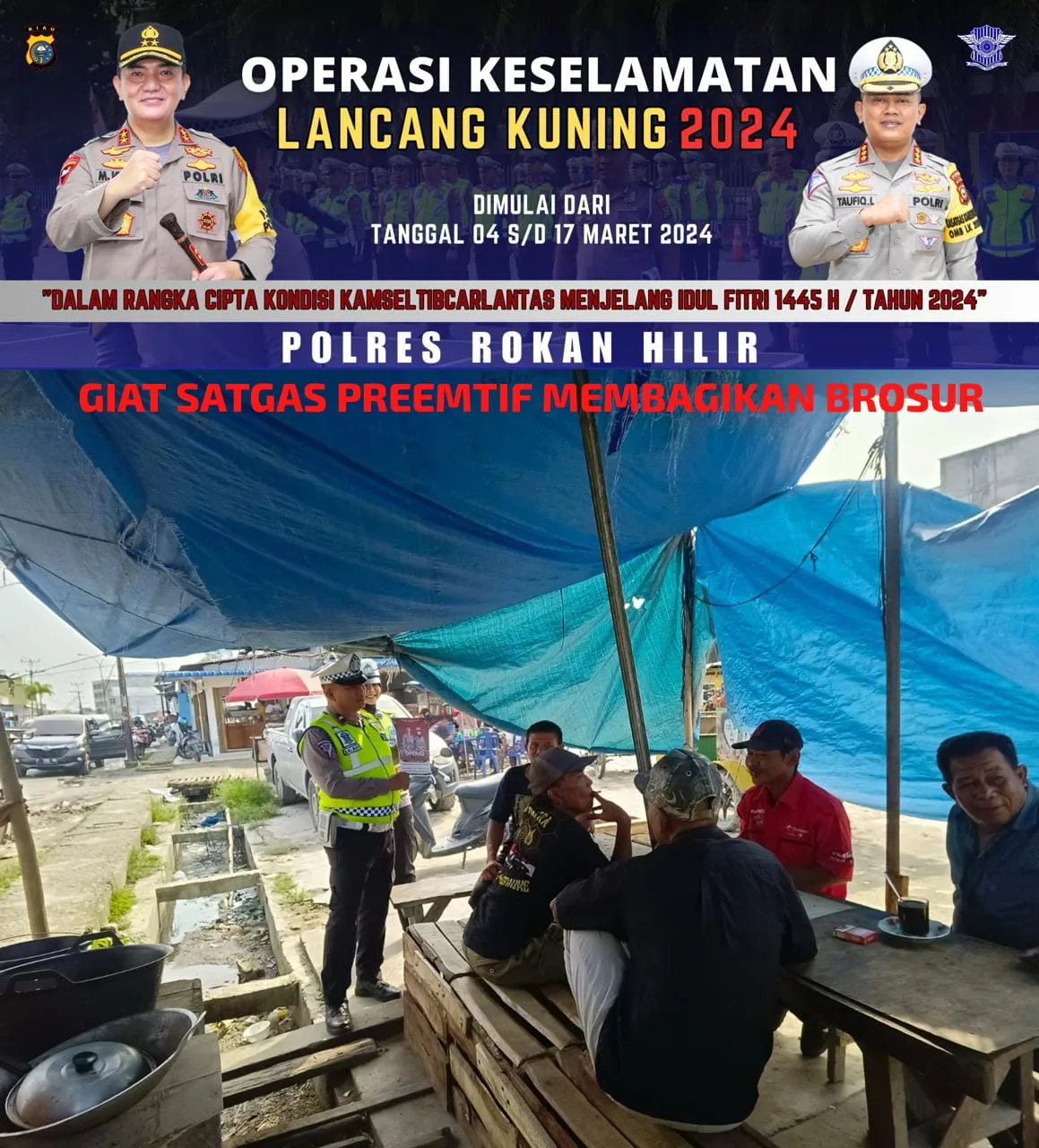 ini digelar 8 Anggota satgas Preemtif, dengan membagikan 200 Lembar Stiker ” Operasi keselamatan” Kepada Masyarakat Pengendara R2, R4, angkutan umum dan barang. Dan membagikan 300 Lembar Brosur ” OPS KESELAMATAN LK 2024″ Kepada Masyarakat Pengendara R2, R4, angkutan umum dan barang.