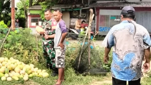 Bekasi Pebayuran – Berawal Mengajak Masyarakat memanfaatkan lahan Kosong, Akhirnya Babinsa Koramil 11 Pebayuran Serka Tarman Bantu Petani Panen Timun Suri di Kampung Teko Desa Kertajaya RT 02/01 Kecamatan Pebayuran Kabupaten Bekasi, Sabtu 16/3/2024