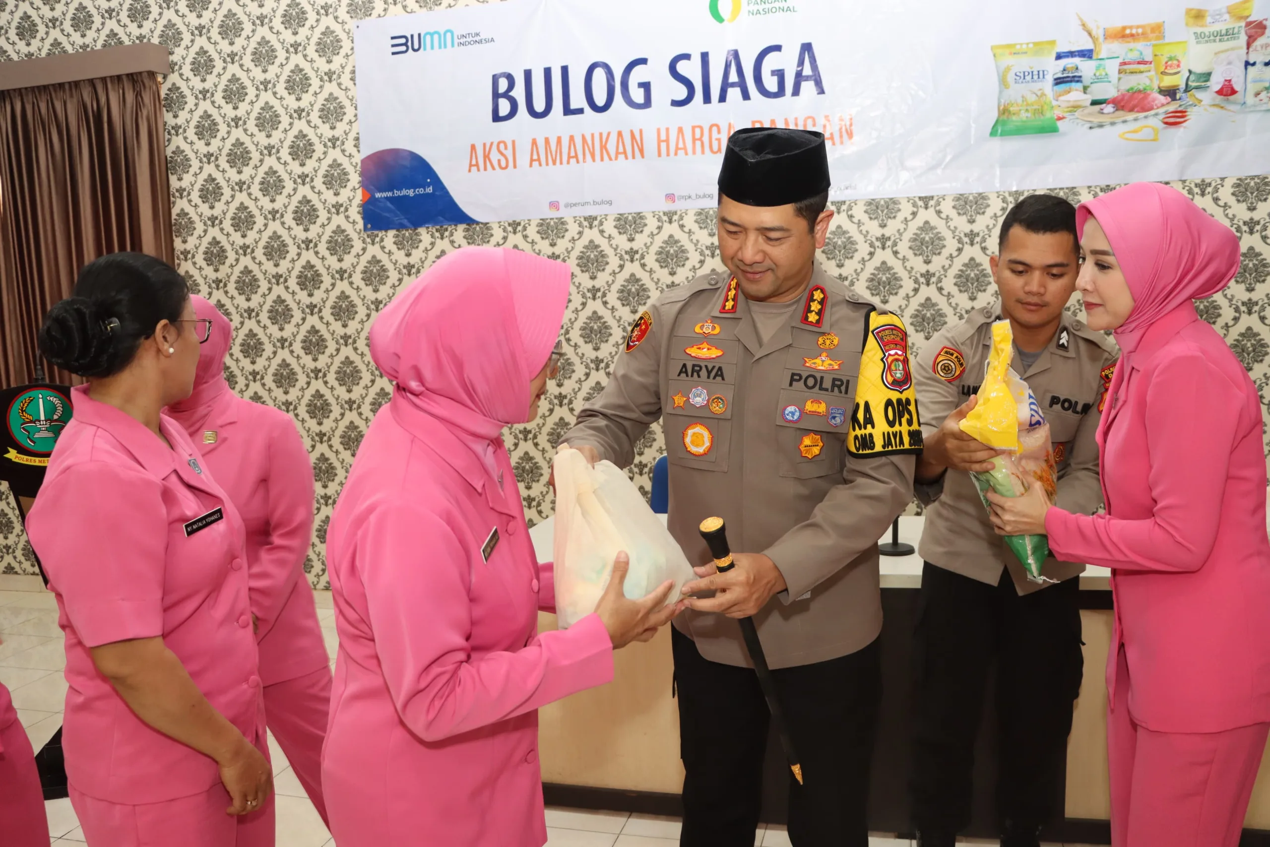 Depok – Kapolres Metro Depok Kombes Pol Arya Perdana S.H, S.I.K, M.Si bersama Ketua Bhayangkari Cabang Metro Depok Ny. Emma Arya Perdana memimpin kegiatan pemberian sembako murah di Polres Metro Depok dalam upaya meningkatkan ketahanan pangan di jajaran Polres Metro Depok.