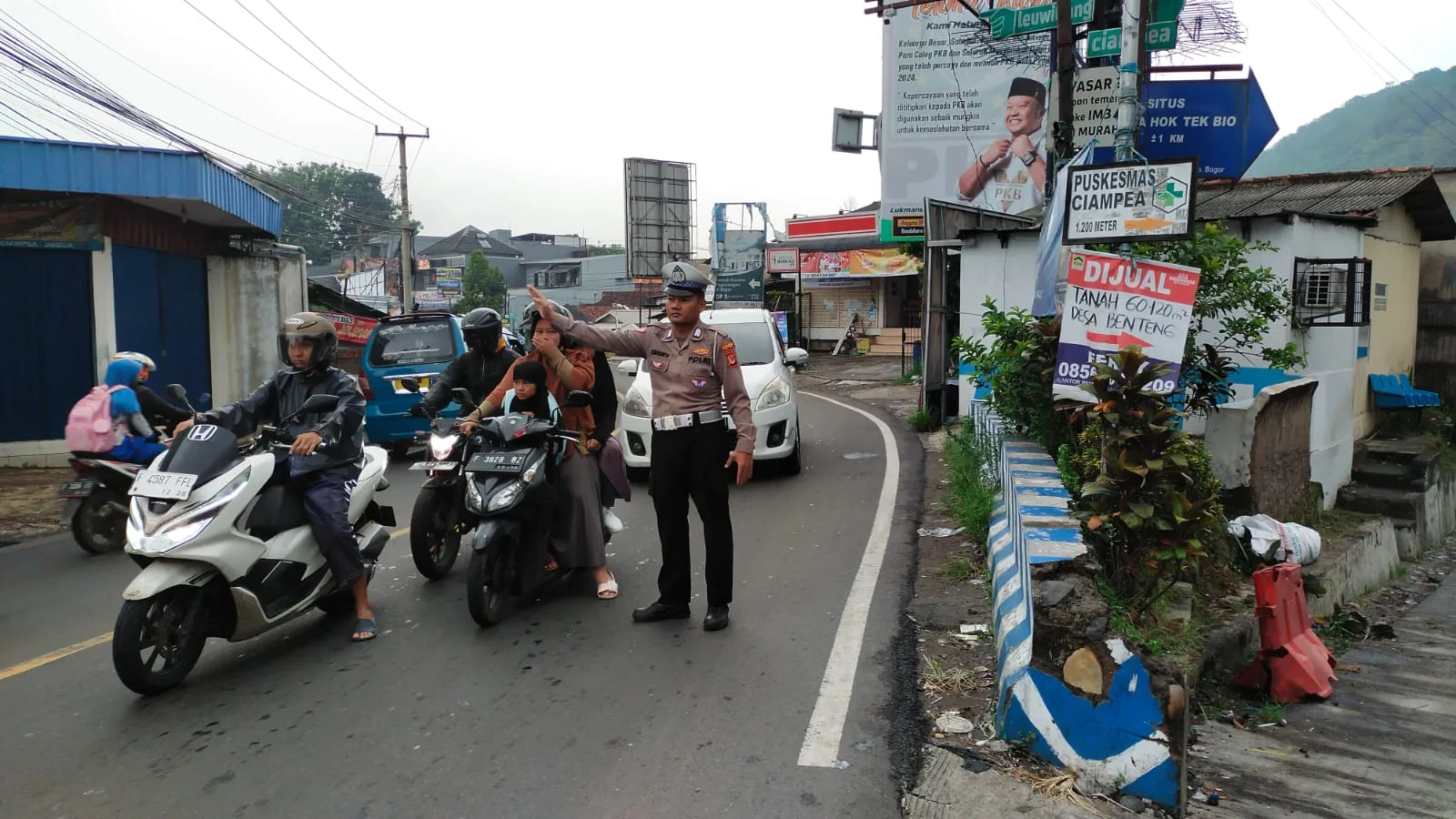 Anggota Wilayah Hukum Polsek Ciampea Polres Bogor Laksanakan Rutin Gatur Lalu Lintas