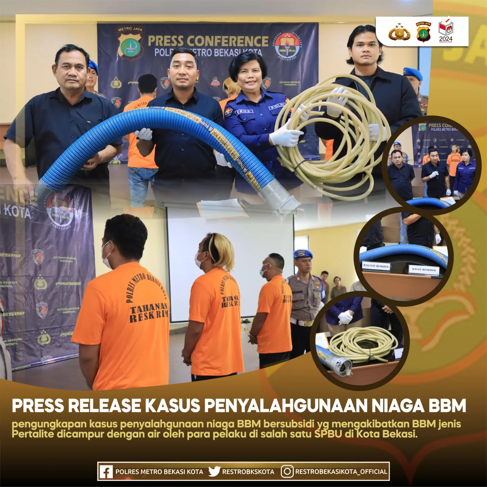 BEKASI – Satreskrim Polres Metro Bekasi Kota akhirnya menetapkan 3 (Tiga) tersangka tindak pidana penyalahgunaan niaga BBM bersubsidi yang mengakibatkan BBM jenis Pertalite dicampur dengan air.
