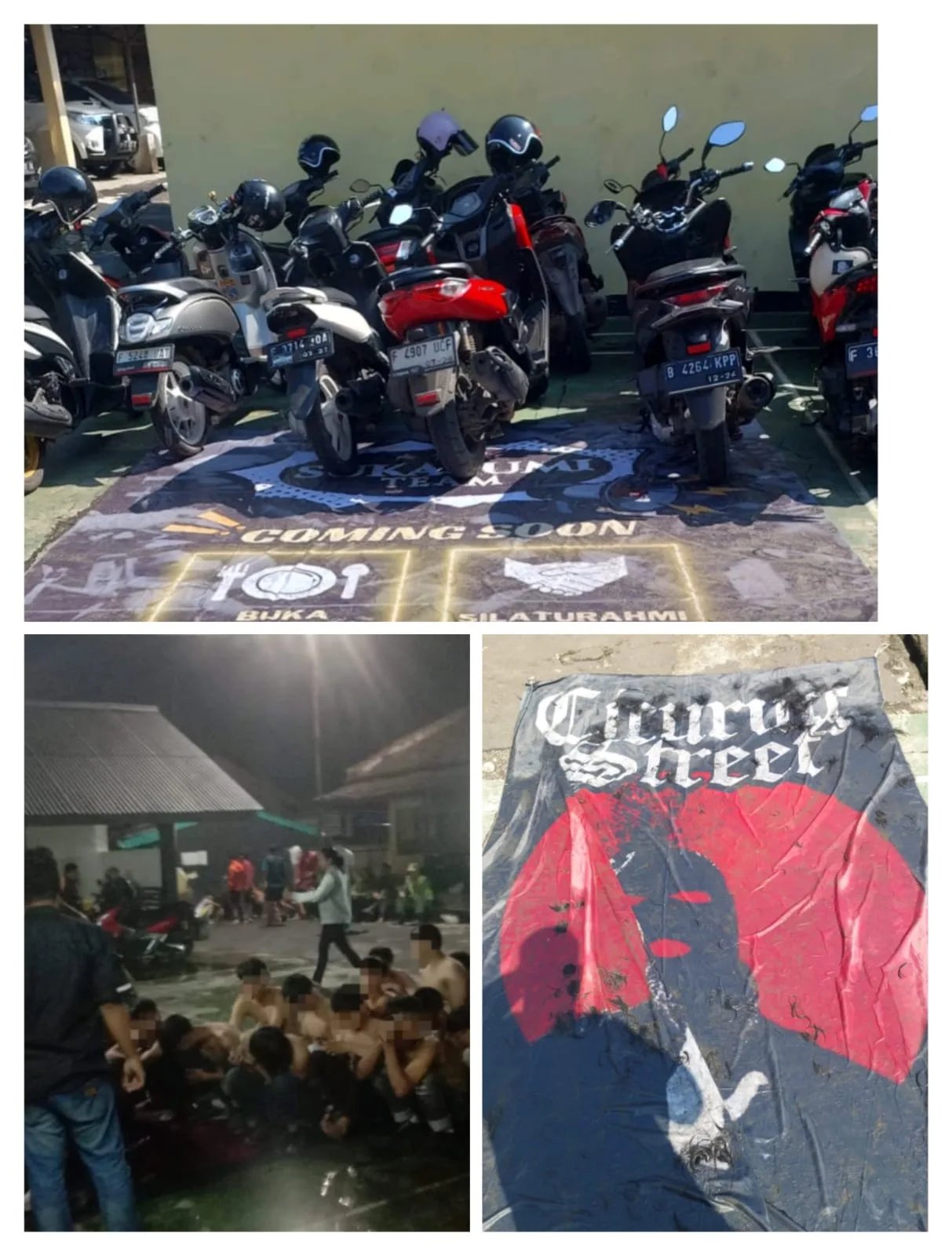 Menurutnya, bahwa mereka yang terjaring itu diduga merupakan bagian dari geng motor Cicurug Street, Sukabumi Never Die dan 28 gabungan geng motor lainnya. Hal itu sesuai dengan barang bukti dari beberapa spanduk yang diamankan. Bahkan polisi juga mengamankan beberapa botol sisa minuman keras.