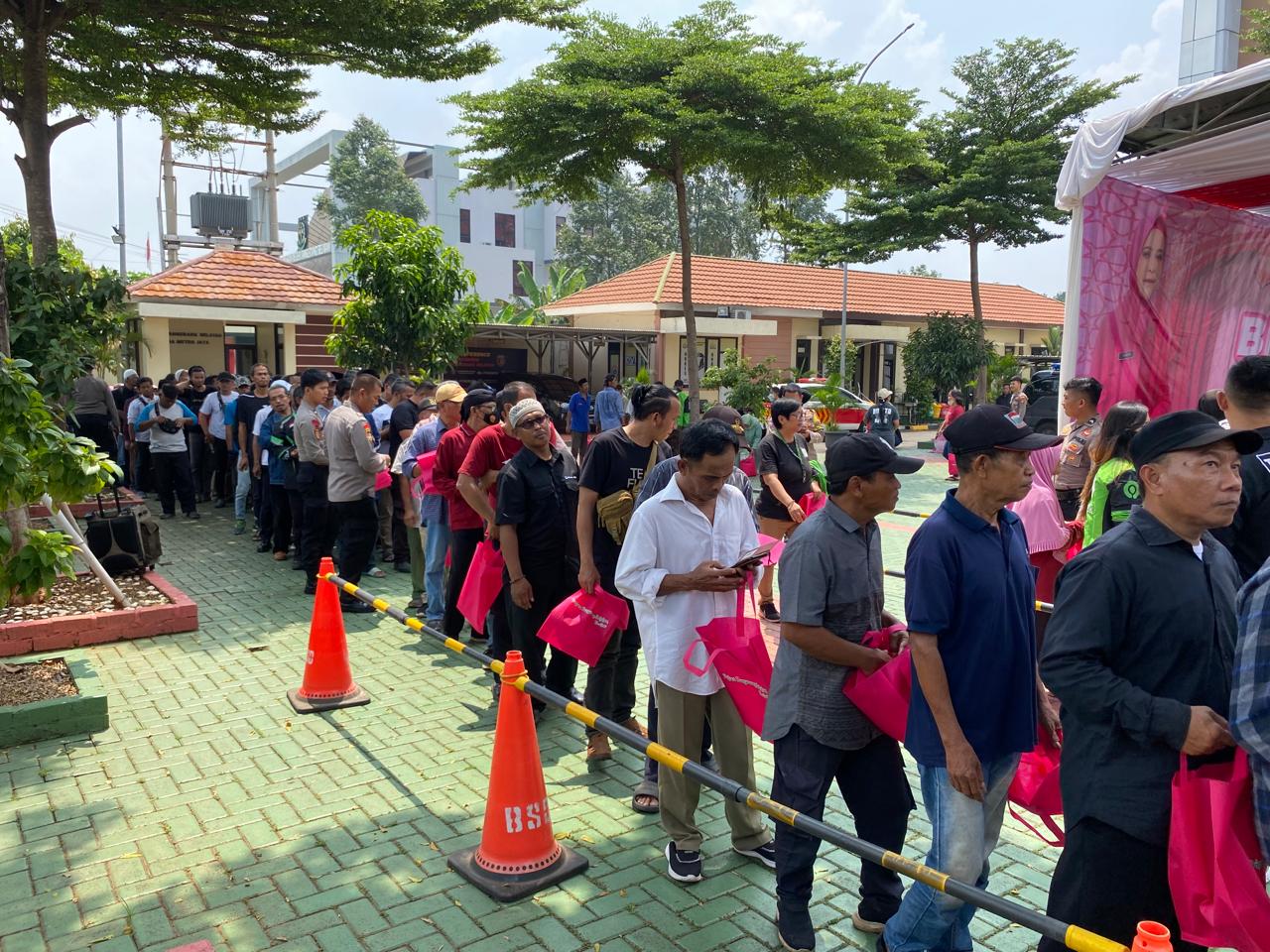 Kedatangan masyarakat tersebut dalam rangka mengambil sembako pada kegiatan βPolres Tangsel Berbagiβ yang dibagikan secara gratis oleh Polres Tangsel.