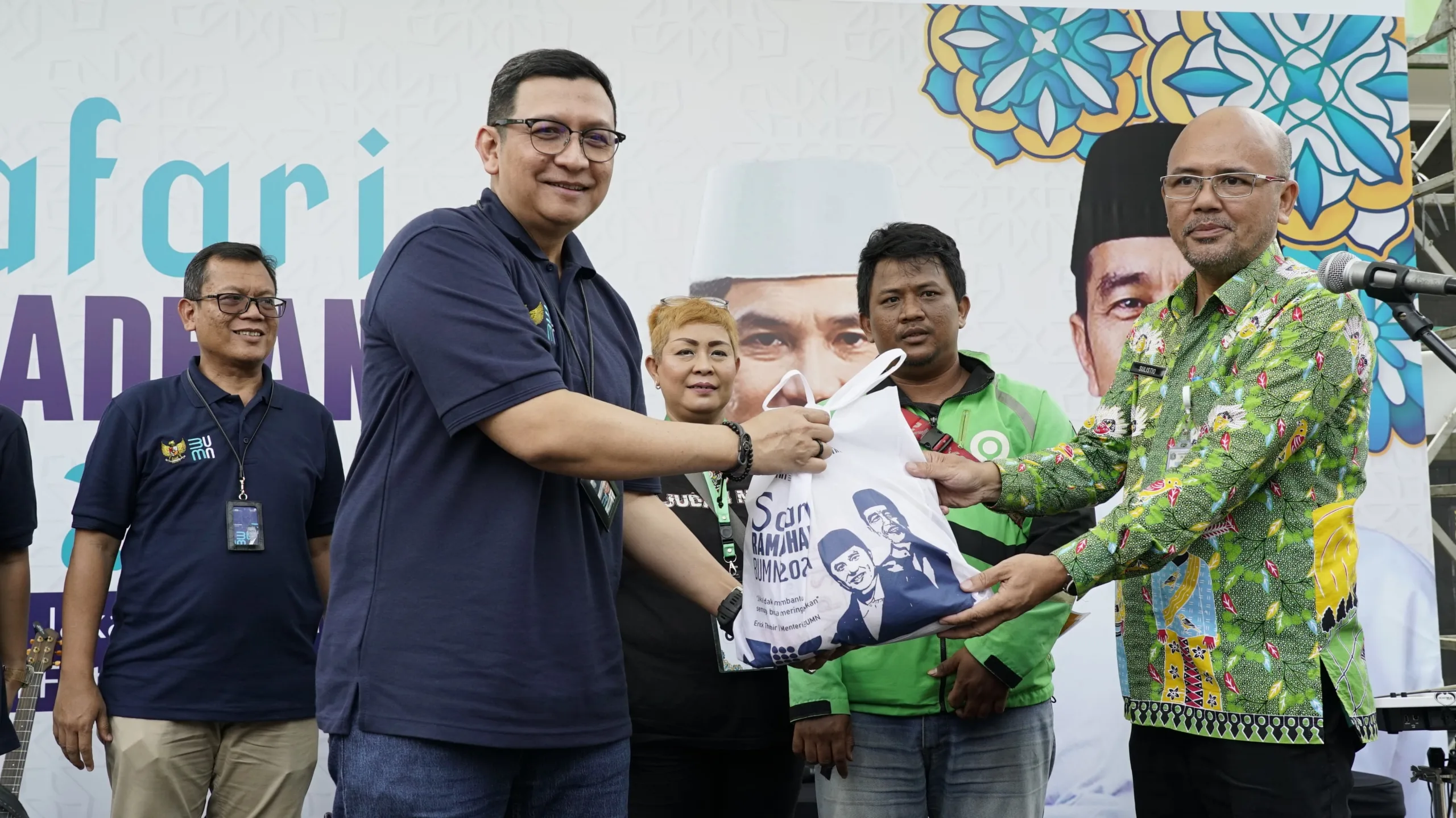 Jakarta Selatan, 4 April 2024 – PT Telkom Indonesia (Persero) Tbk (Telkom) bersama dengan Bank Mandiri dan MindID turut memeriahkan Safari Ramadan BUMN. Ketiga perusahaan BUMN tersebut bagikan sebanyak 2.000 paket sembako yang dapat ditebus dengan harga murah bagi para Ojek Online (OJOL) dan masyarakat sekitar di seputaran Blok S β Kebayoran Baru, Jakarta Selatan (Jaksel) pada Kamis (4/4).