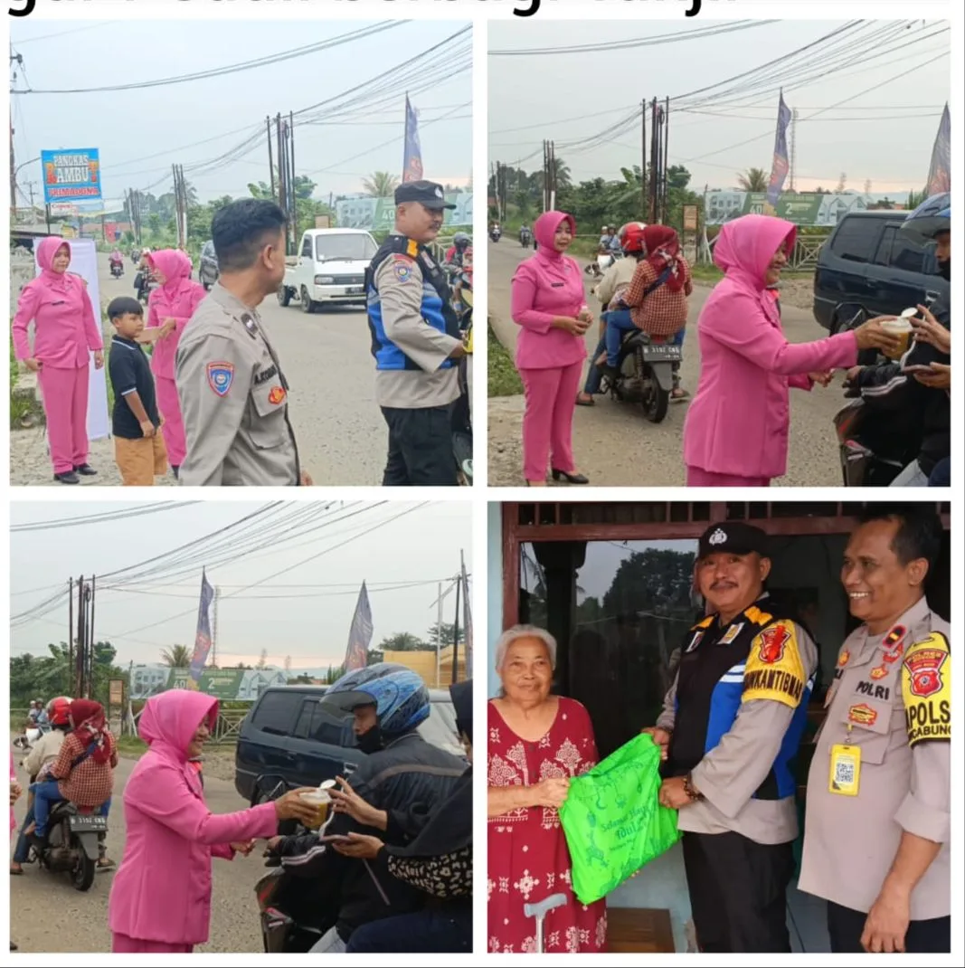Kegiatan pembagian takjil di Pimpin oleh Ketua Bhayangkari Polsek Rancabungur Ibu ATIK AZIS di dampingi Kapolsek Rancabungur IPDA AZIS HIDAYAT, S.Sos beserta Ibu Ketua Ranging Bhayangkari Rancabungur dan personel piket Polsek Rancabungur.