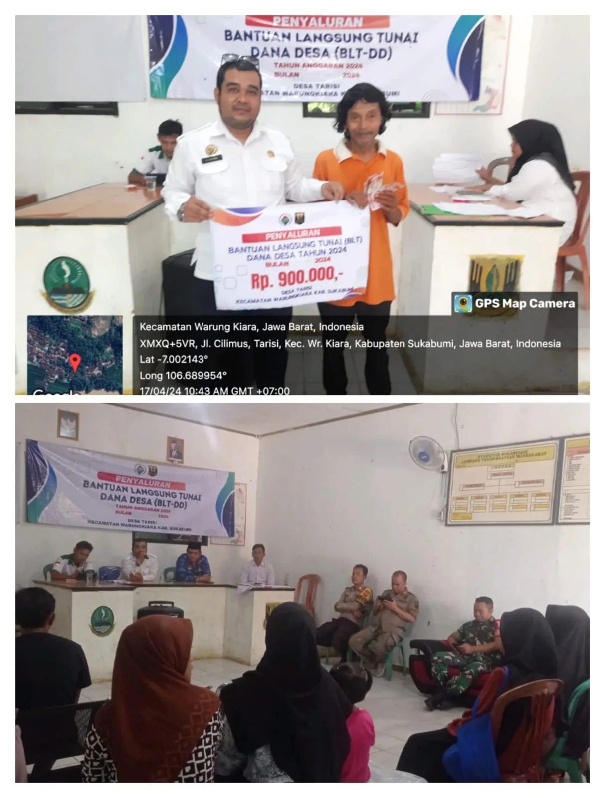 Sukabumi – Sedikitnya 22 KPM (keluarga penerima manfaat) di desa tarisi kecamatan Warungkiara, kabupaten Sukabumi Jawa barat telah menerima BLT-DD (bantuan langsung tunai dana desa) pada Rabu (17/4/2024).