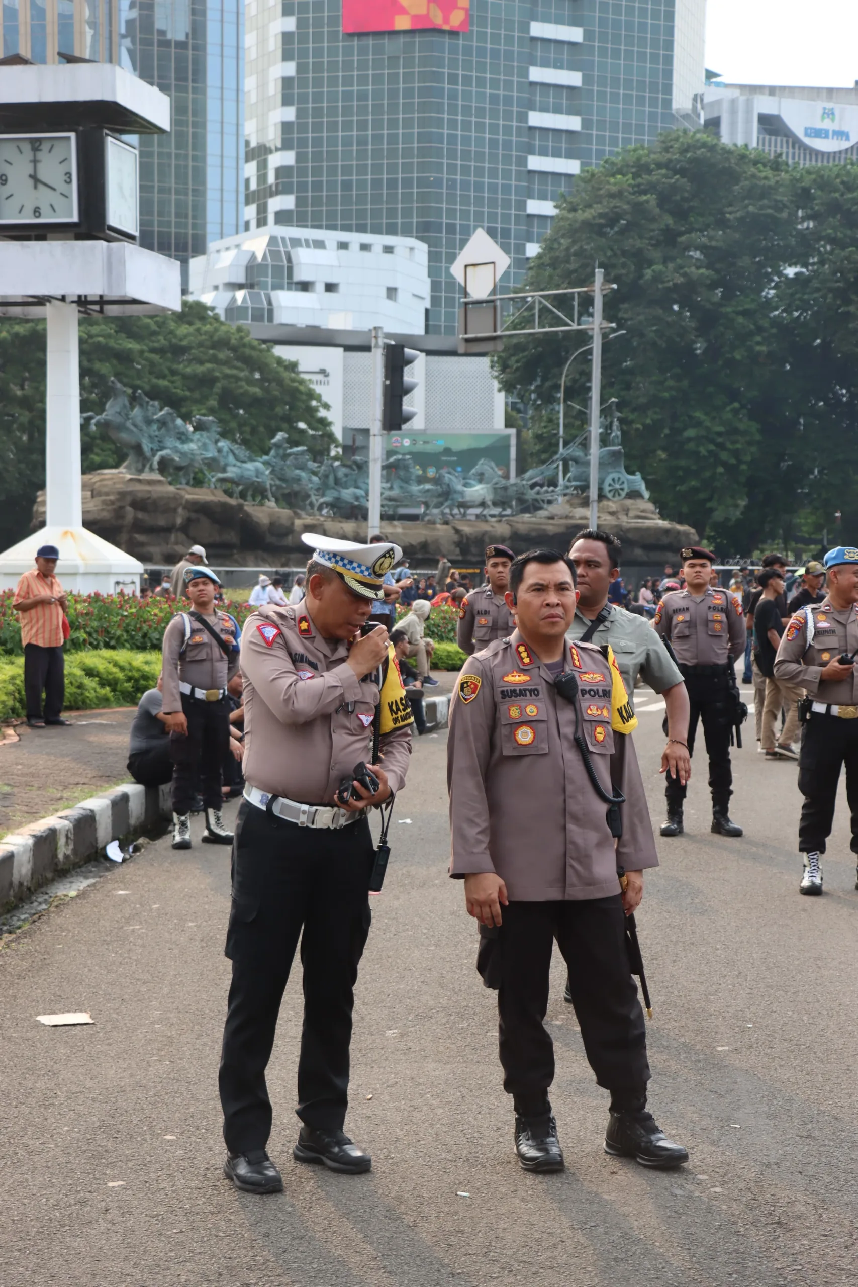 Jakarta – Dalam rangka pengamanan penyampaian pendapat di muka umum hari ini Polri bersama TNI, Pol PP serta Dishub siap melakukan pengamanan dan memperlancar jalannya aksi kegiatan yang akan berlangsung siang ini di sekitaran Monas Jakarta Pusat. Jumat (19/04/2024).