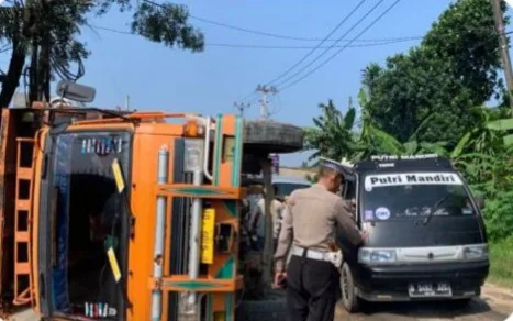 Kecelakaan Tunggal Truk Tronton di Parung Panjang, Polsek Parung Panjang dan Unit Laka Lantas Polres Bogor Lakukan Penanganan Dan Tidak Menimbulkan Korban Jiwa