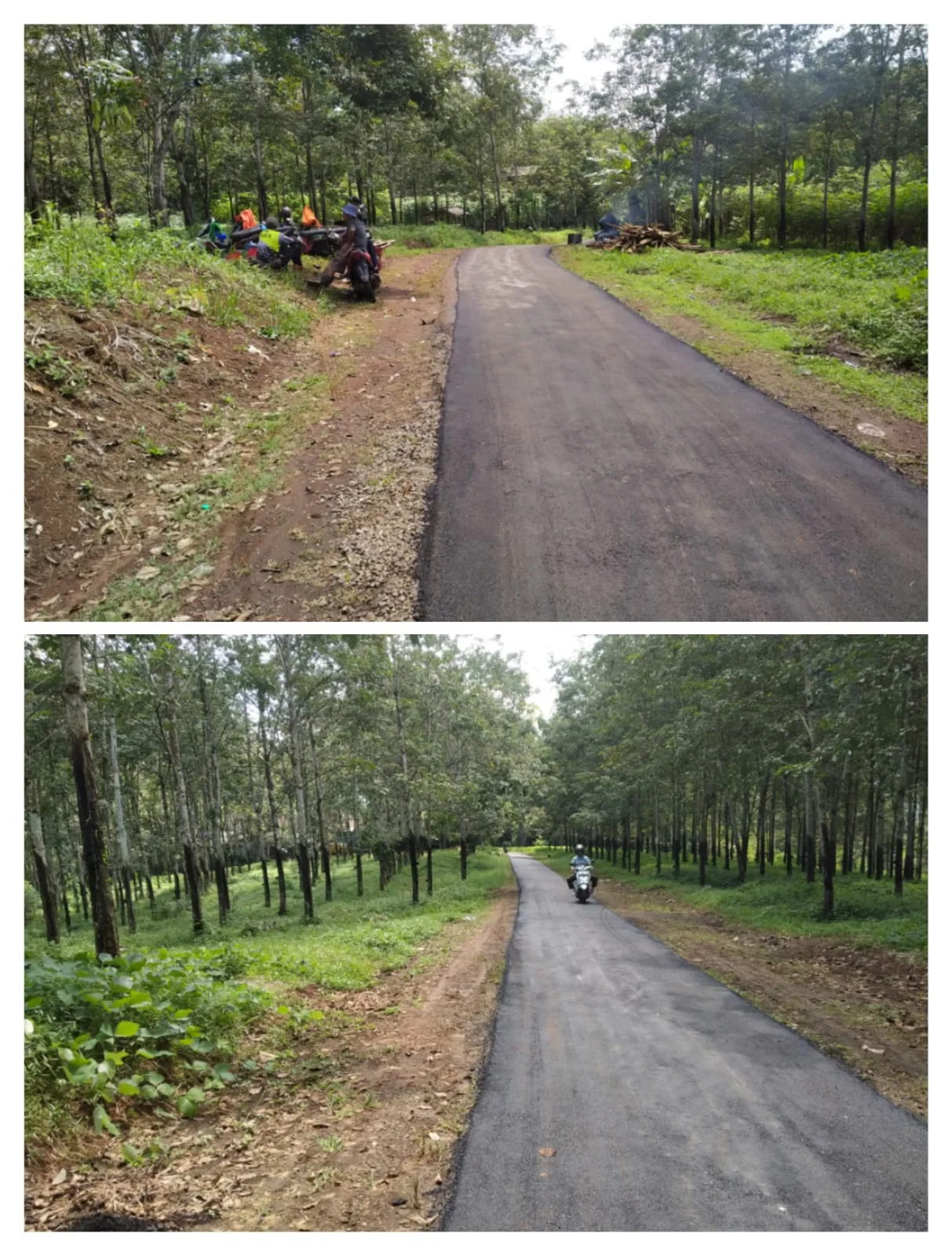 Dengan begitu lebih awal pelaksanaan nya sesuai dengan musdus dan musrenbangdes, jalan itu menjadi prioritas dalam usulan, untuk itu juga saya berharap kepada masyarakat agar sama-sama dapat merawatnya, bagi masyarakat yang menggunakan mobil angkutan barang agar tidak melebihi tonase nya.