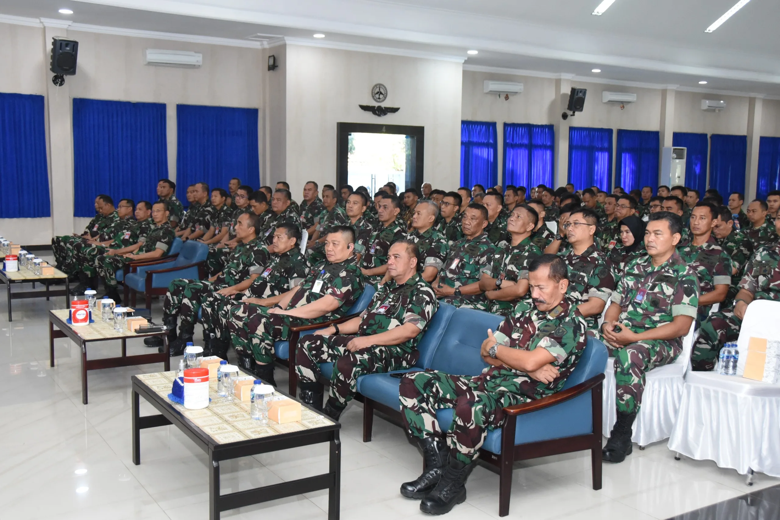 Marsma TNI Tjatur Pudji Handojo, S.E, para pejabat Koharmatau, Komandan Depohar 10, Panitia Kegiatan Ceramah Lambangja _Road To Zero Accident_ Puslaiklambangjaau, Perwakilan Personel Koharmatau, Perwakilan Personel Lanud Husein S, Perwakilan Personel Dislitbangau.