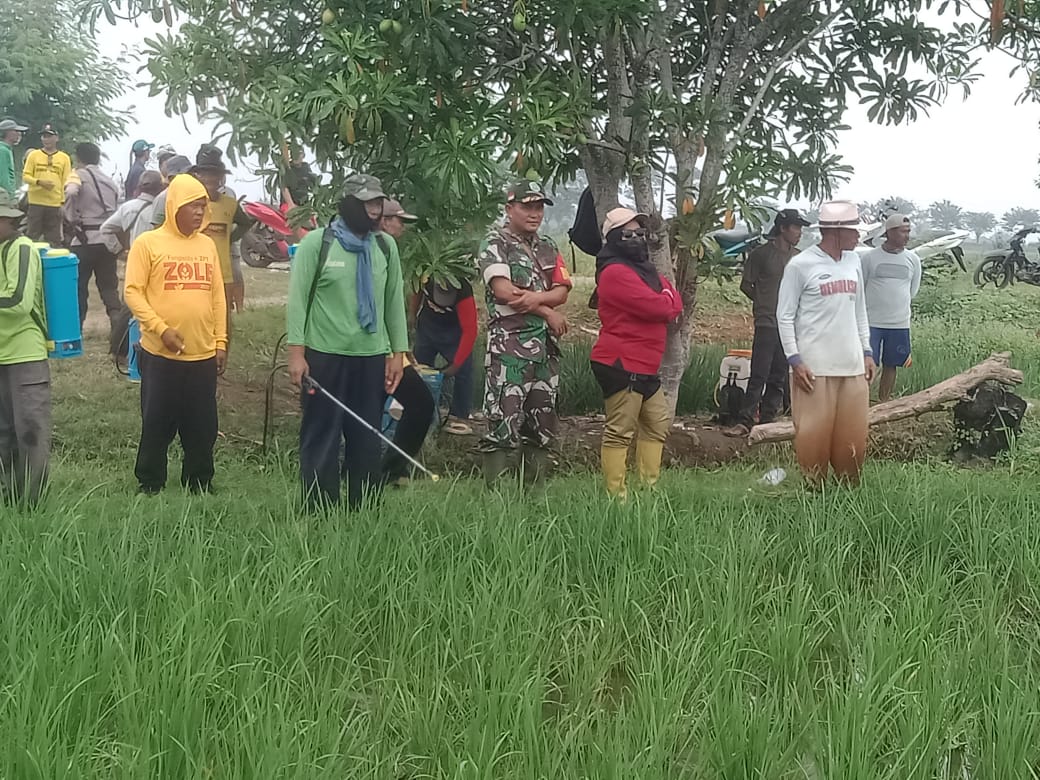 Kabupaten Bekasi -Sebagai upaya mencegah penyebarluasan terhadap hama Belalang Kembara yang menyerang tanaman jagung petani, Anggota Koramil 11 Pebayuran Sertu Amar Makruf Dampingi Penyuluhan Pertanian Di Areal persawahan pertamina pisangan Kampung Pulo pipisan RT 003/ 02 Desa Karang patri Kecamatan Pebayuran Kabupaten Bekasi, Pada Rabu 1/4/2024.