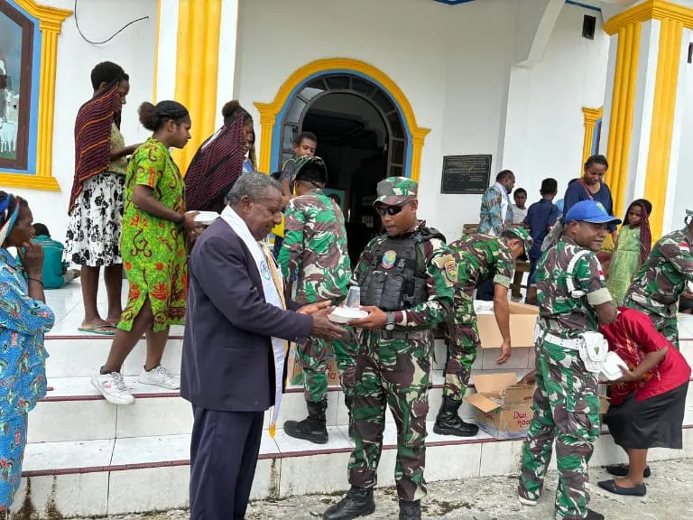 Peringatan HUT Kodam XVII/Cenderawasih kali ini tidak hanya diisi dengan acara militer, namun juga dilengkapi dengan kegiatan sosial yang berfokus pada kemanusiaan. Prajurit Kodim 1715/Yahukimo memanfaatkan momen spesial ini untuk menunjukkan kepedulian mereka kepada masyarakat setempat dengan berbagi makanan kepada jemaat gereja yang hadir.