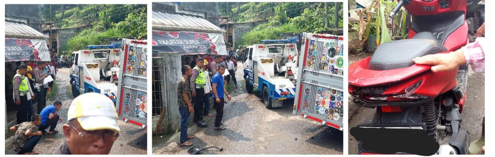 Polsek Caringin Bersama Unit Laka Lakukan Penanganan Kecelakaan Lalu Lintas di Jalan Alternatif Veteran II, Caringin: Dugaan Gagal Fungsi Rem Truk Menyebabkan Tiga Orang Luka