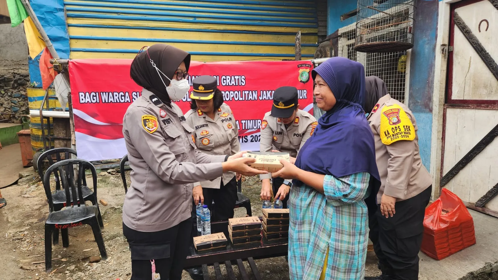 Jakarta – Kabaglog Polres Metro Jakarta Timur AKBP Julianti beserta Jajaran Binmas Polres Metro Jaktim dan Polsek Jatinegara membagikan nasi kotak dan air mineral gratis kepada Warga masyarakat kurang mampu di Slum Area Kp. Jembatan RT.012/RW.06 Kel. Cipinang Besar Selatan Kec. Jatinegara Jakarta Timur. Kamis (16/5/24)