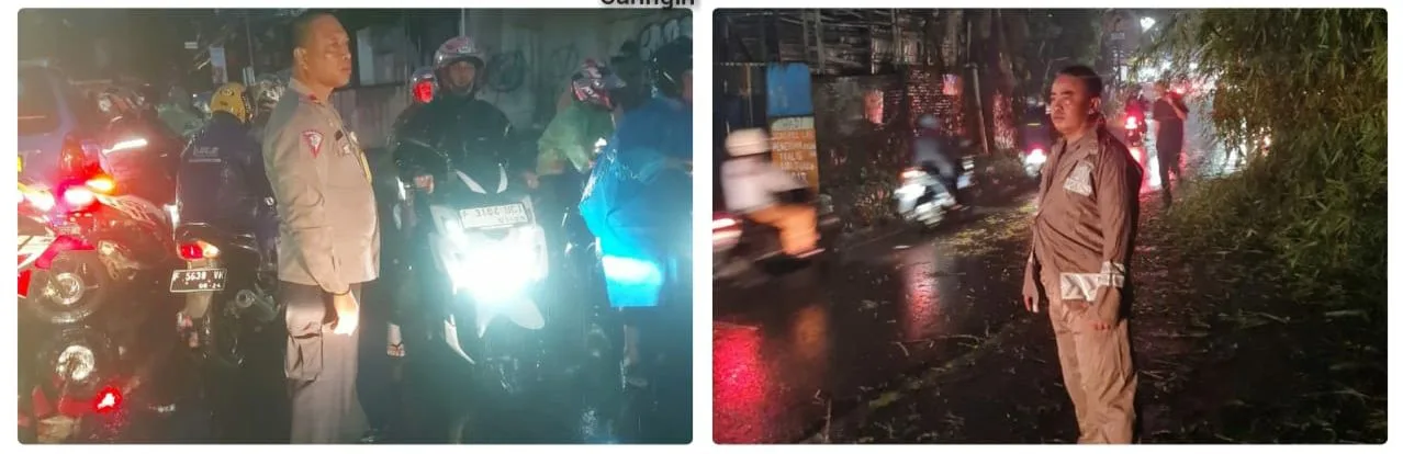 Polsek Caringin Yang Dipimpin Oleh Kapolsek Caringin AKP Hendra Kurnia, S.H., M.M Beserta Gabungan Tim Dari BPBD Setempat Cepat Tanggap Tindak lanjutti dalam penanganan arus lalu lintas dimana adanya Pohon Tumbang Yang Mengganggu Arus Lalu Lintas Yang Mengarah Ke Jakarta Dan Sukabumi dimana kendaraan bermotor banyak yang melaju.