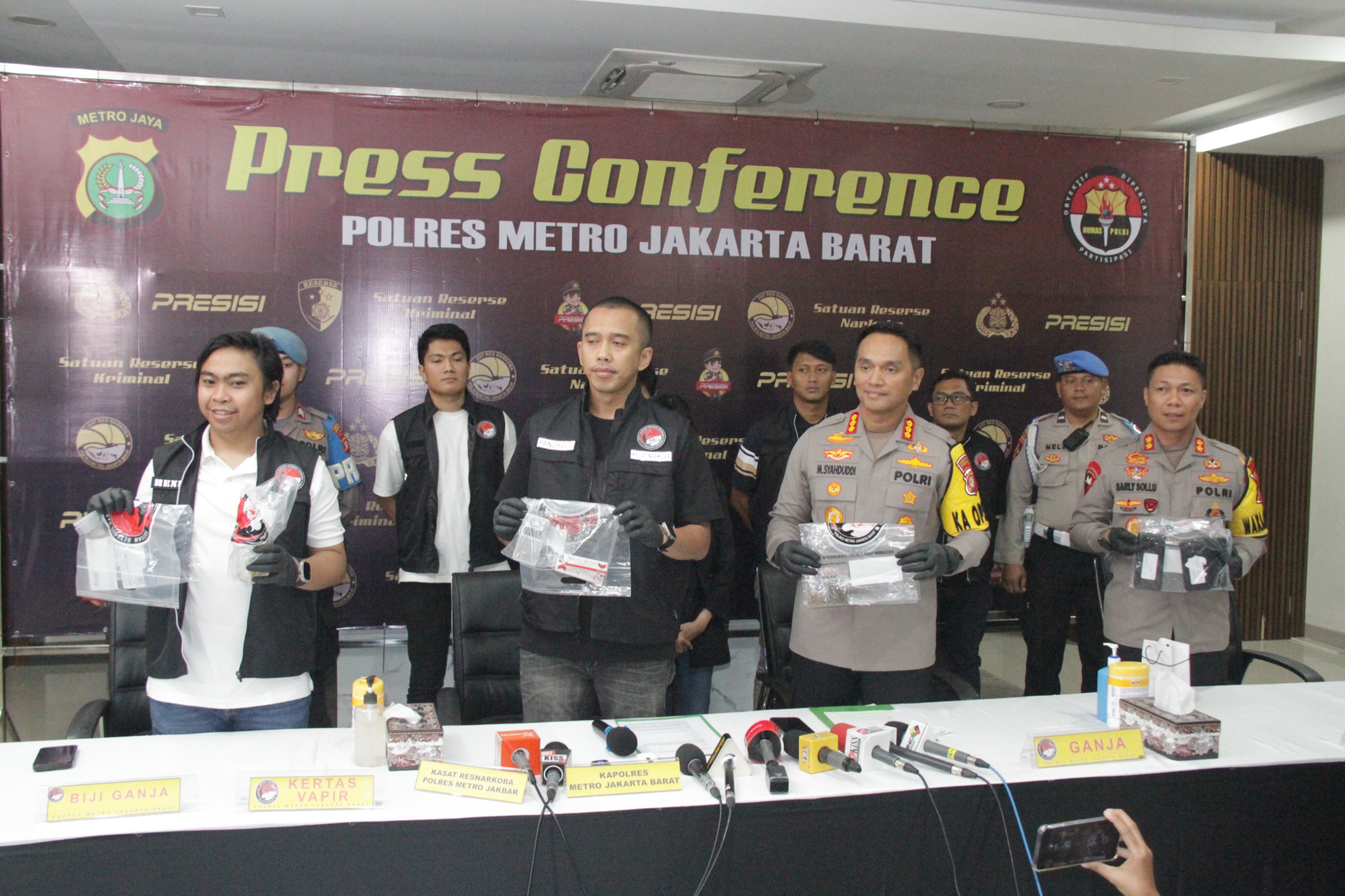 Jakarta Barat – Polres Metro Jakarta Barat menggelar Konferensi Pers terkait pengungkapan kasus penyalahgunaan narkotika jenis ganja yang melibatkan artis YG dan EK.