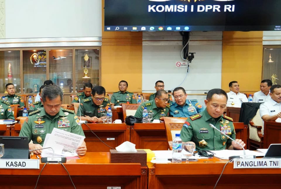 Jakarta (Puspen TNI) – Panglima TNI Jenderal TNI Agus Subiyanto menghadiri Rapat Kerja (Raker) bersama Komisi I DPR RI membahas realisasi dan evaluasi pelaksanaan APBN TA 2023, dan pembahasan rencana anggaran dan rencana kerja pemerintah Kemhan/TNI tahun 2025 bertempat di Rupat Komisi I DPR RI Senayan Jakarta Pusat. Rabu (12/6/2024).