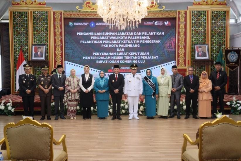 Pj Gubernur Sumsel Fatoni Lantik Pj Walikota Palembang Serta Serahkan SK Perpanjangan Pj Bupati OKU