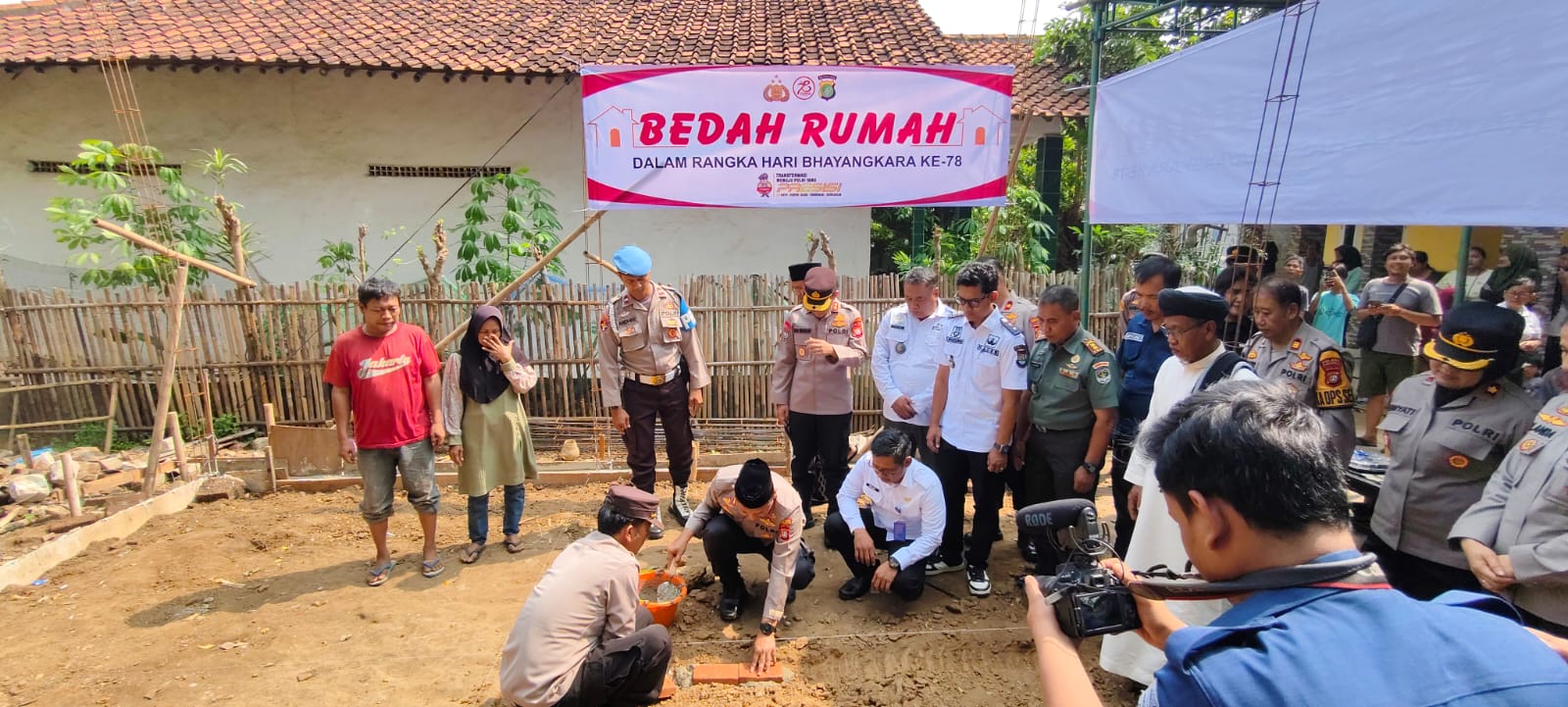 Kapolres Metro Tangerang Kota Kombes Pol Zain Dwi Nugroho, bersama Waka Polres AKBP Yolanda Evalyn Sebayang turun langsung melakukan peletakan batu pertama program bedah rumah itu.