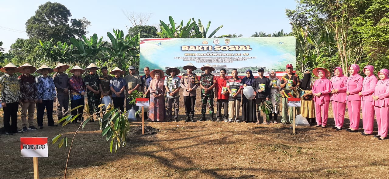 KAMPAR – Peringati Hari Bhayangkara Ke-78, Polres Kampar laksanakan kegiatan penanaman pohon di Jalan Akper RT.003/RW.003 Dusun II Sei Baung Desa Ridan Permai Kecamatan Bangkinang Kota, Kamis, (27/6/24), sekira pukul 07.00 WIB.