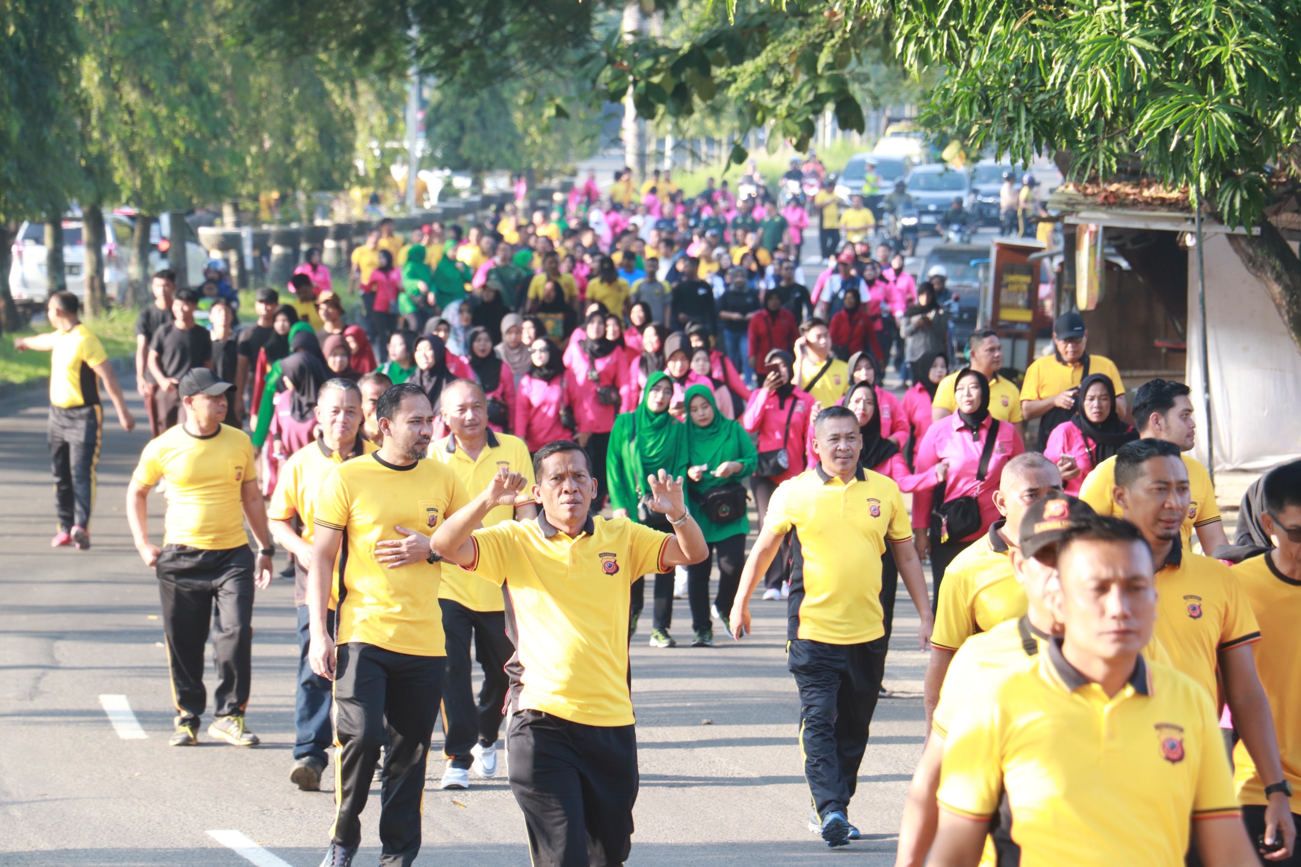 Kegiatan dimulai dengan dibuka oleh Kapolres Sukabumi dengan pelepasan balon, dengan rute Mako Polres Sukabumi – Lapang Canghegar Palabuhanratu – Mako Polres Sukabumi. Setelah jalan santai, acara dilanjutkan dengan senam bersama serta hiburan dan pembagian doorprize.